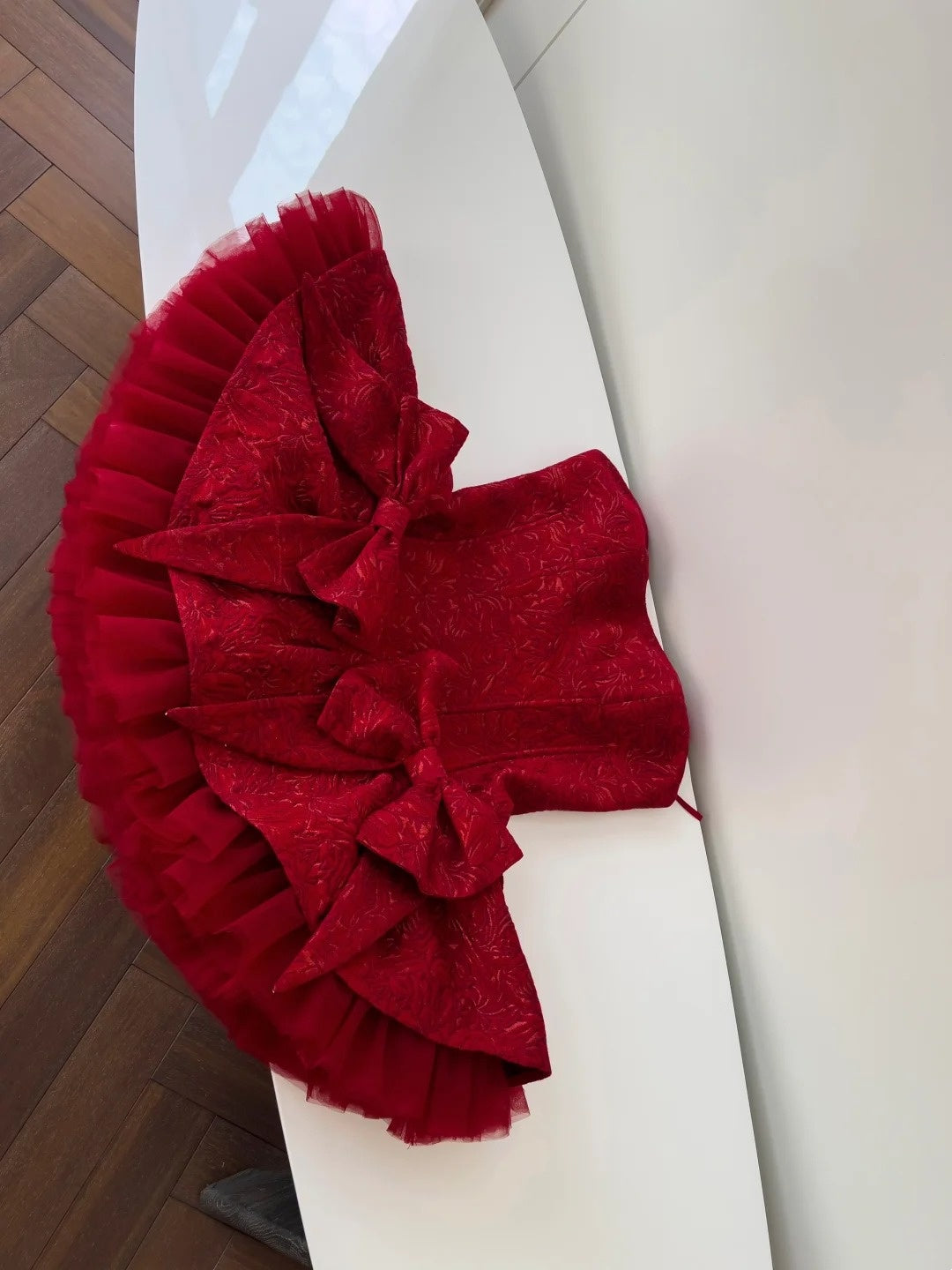 Trendy Red Homecoming Dress Jacquard A-Line Birthday Dress Bows Mini Dress GG5866